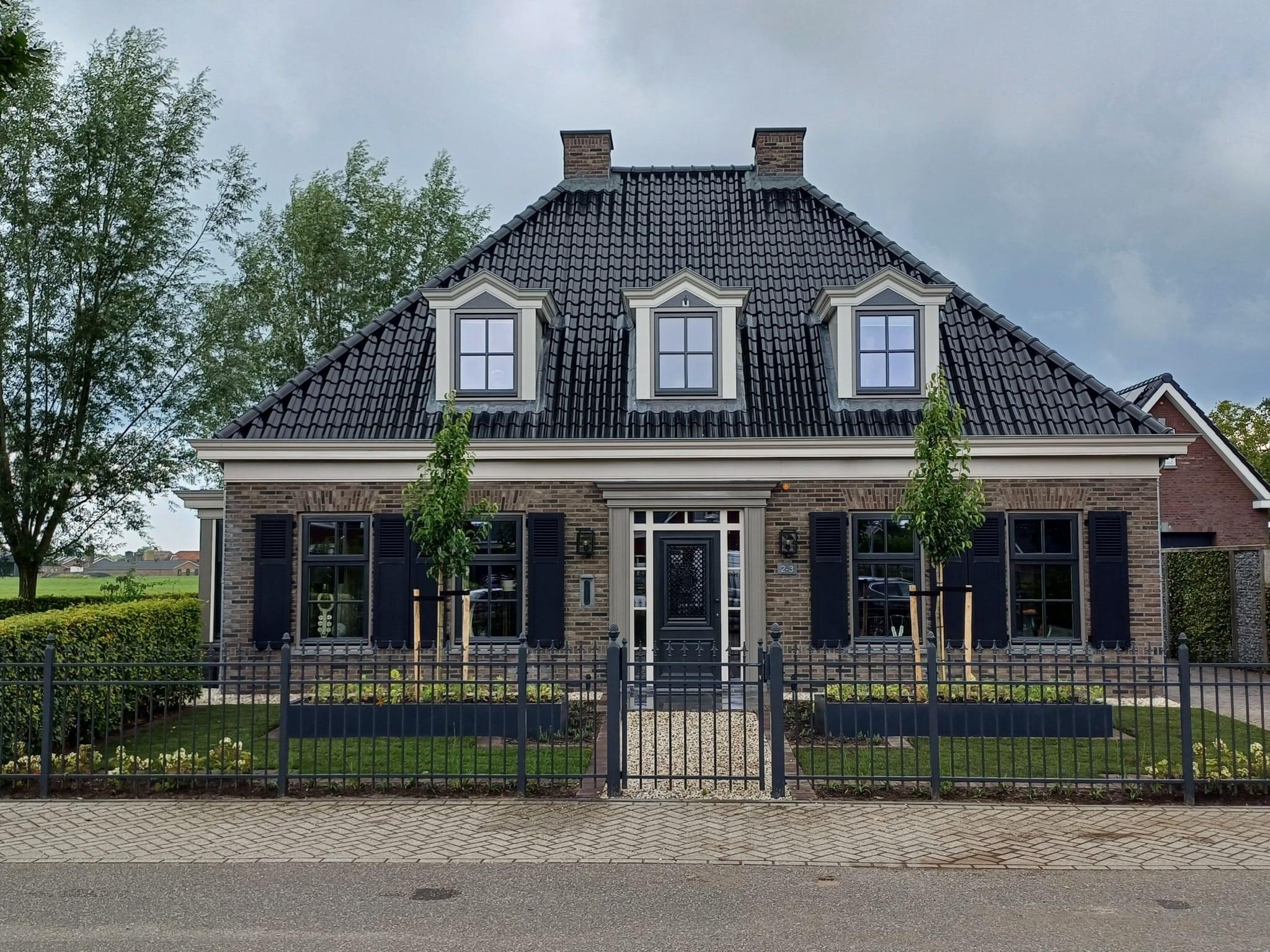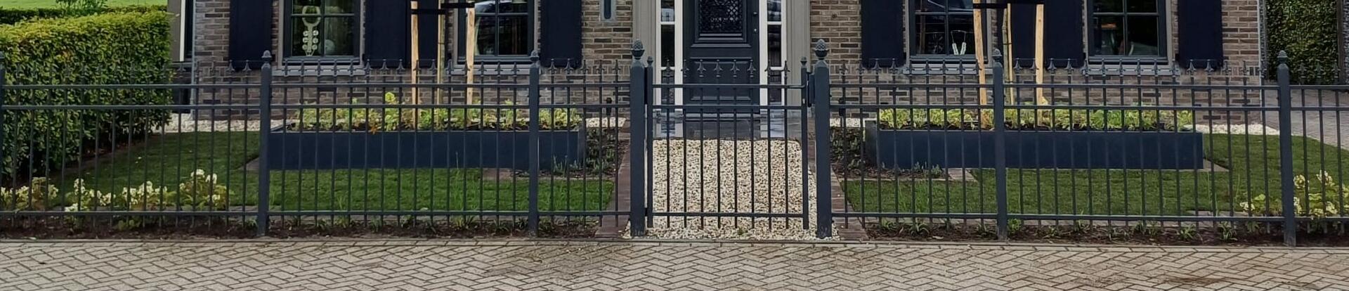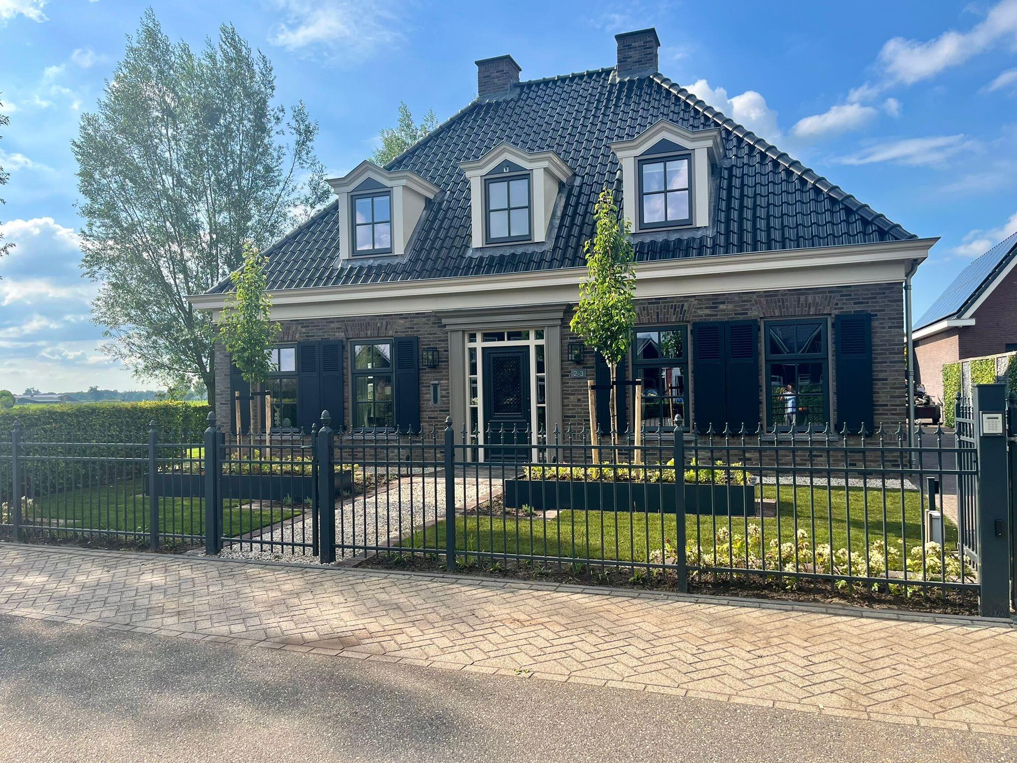 Voor deze voortuin in Lunteren verzorgden we het ontwerp en de aanleg. De oude buxushagen waren afgestorven, dus is gekozen voor een nieuw gazon, een pad naar de voordeur met het bestaande grind, en bloembakken voor extra structuur. De beplanting bestaat uit hortensia’s, lavendel en andere soorten in paarse tinten, voor een fris en bloemrijk geheel.