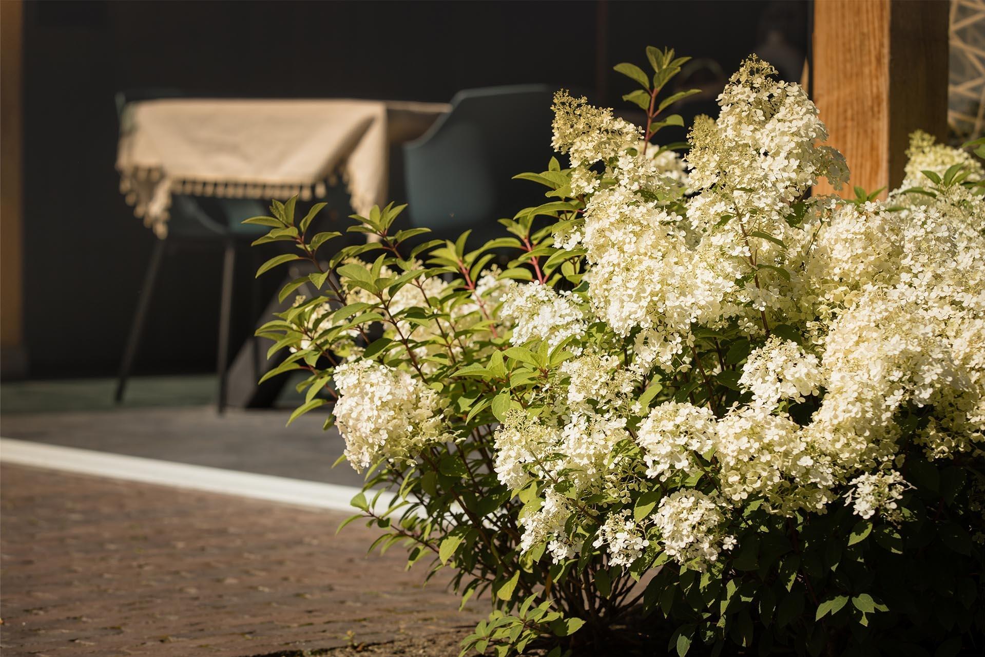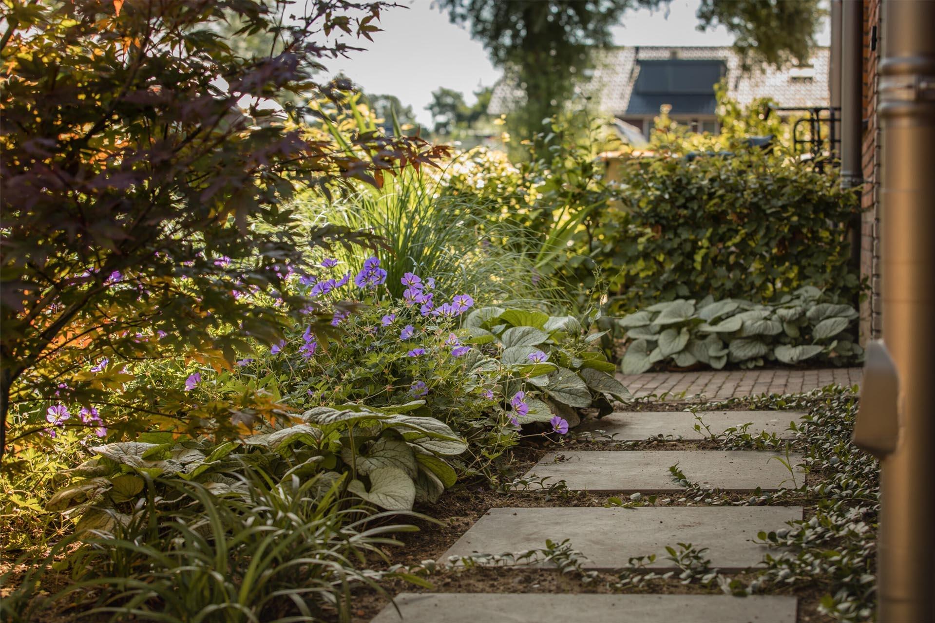 In 2022 realiseerden we in Wekerom deze smaakvolle voor- en achtertuin, die het hele jaar door kleurrijk blijft. Het is een eigen ontwerp met groen en bloei in elk seizoen. Afgewerkt met gebakken bestrating voor een warme, natuurlijke sfeer.
